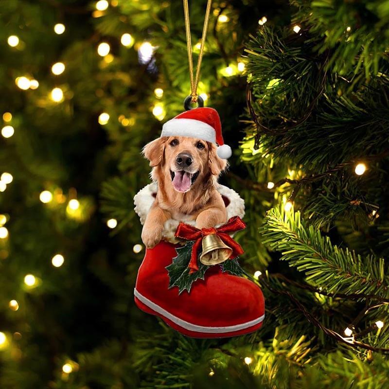 Dark Golden Retriever In Santa Boot Christmas Hanging Ornament SB022