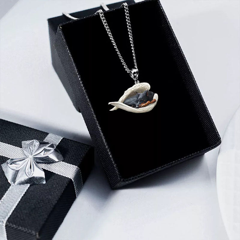 Doberman Sleeping Angel Stainless Steel Necklace SN029