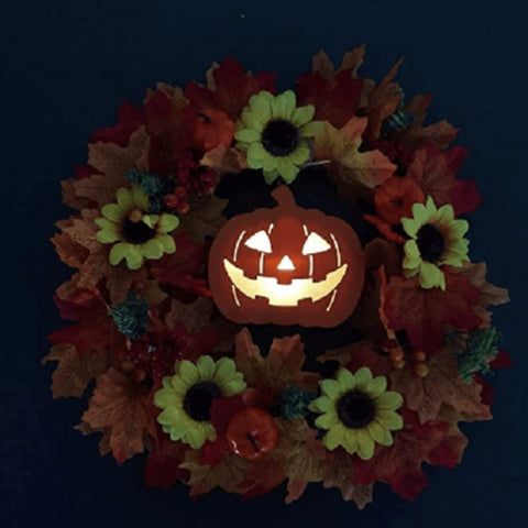 Glowing Pumpkin Wreath Door Decoration Hanging Wreath