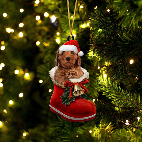 Labradoodle In Santa Boot Christmas Hanging Ornament SB042
