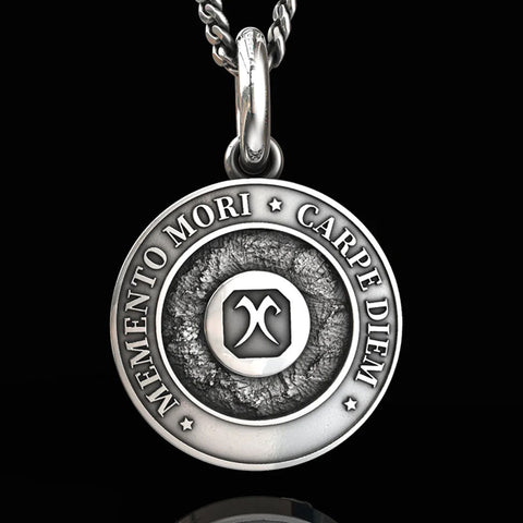 A heavyweight Memento Mori skull pendant. The pendant is highly polished with the skull in a polished matt.