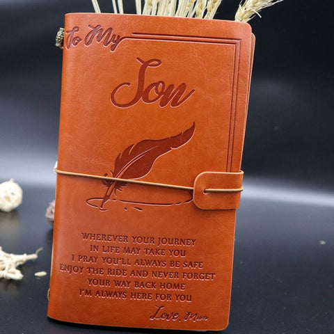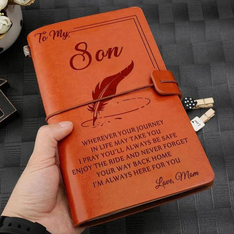 Mom To Son - Enjoy The Ride - Engraved Leather Journal Notebook