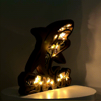 Our designer designed the word "shark" at the bottom of this piece and took the silhouette of a shark for the top. The inside design well interprets their diet and habitats with precisely cut details.