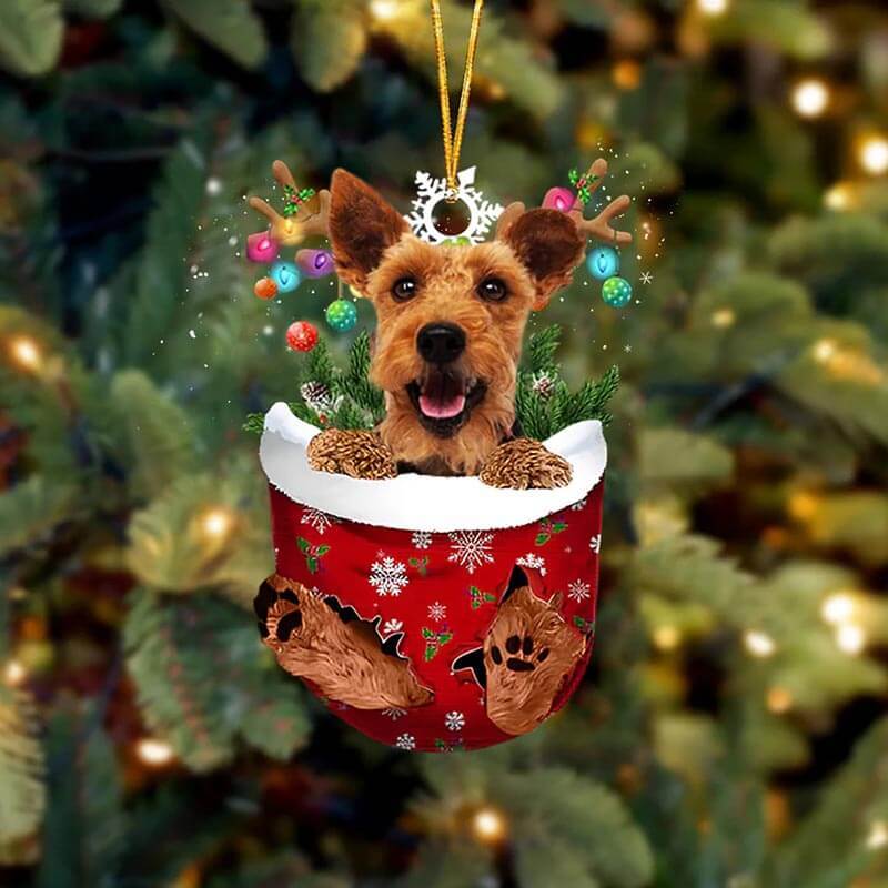 Welsh Terrier In Snow Pocket Christmas Ornament SP111